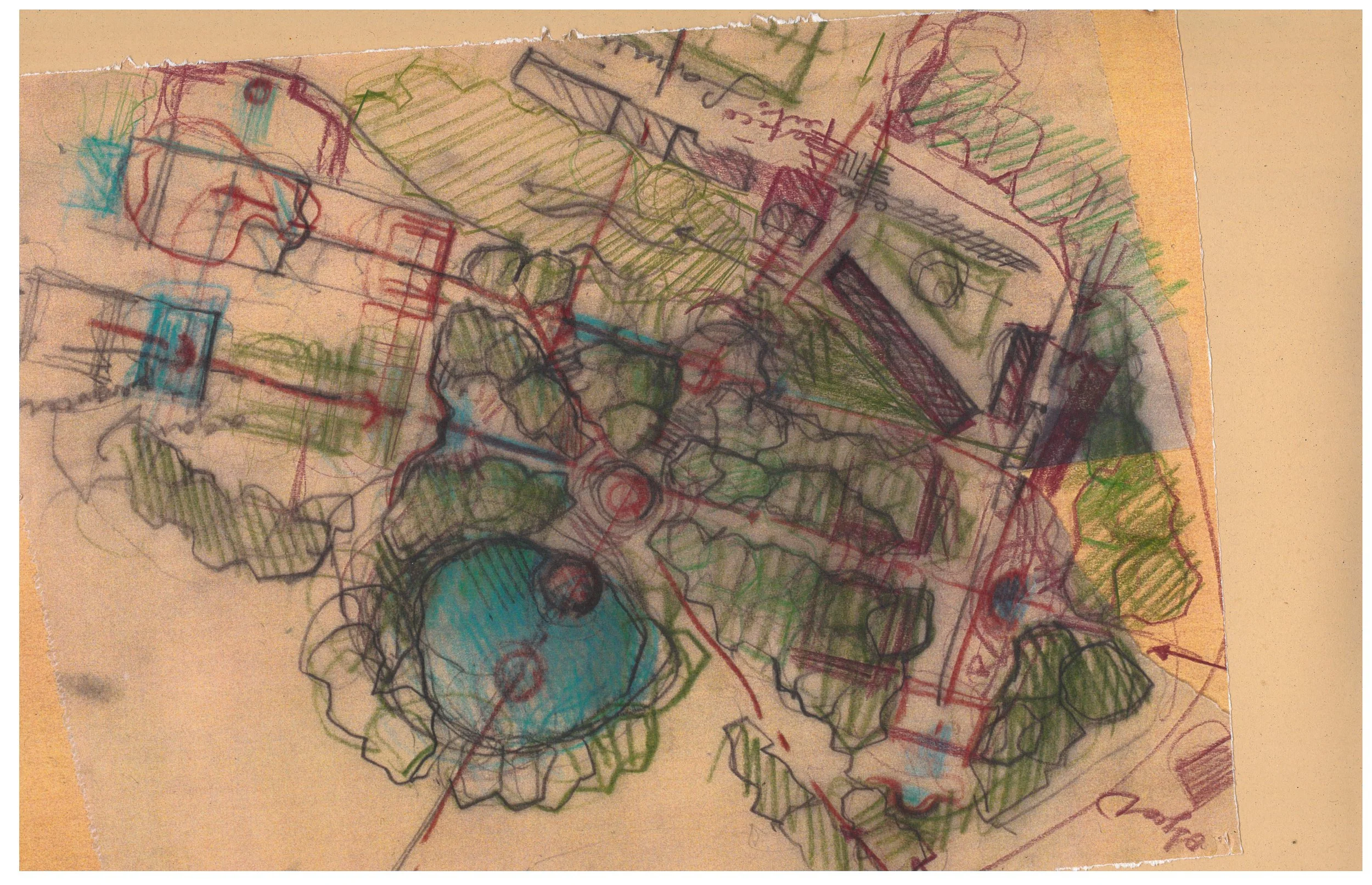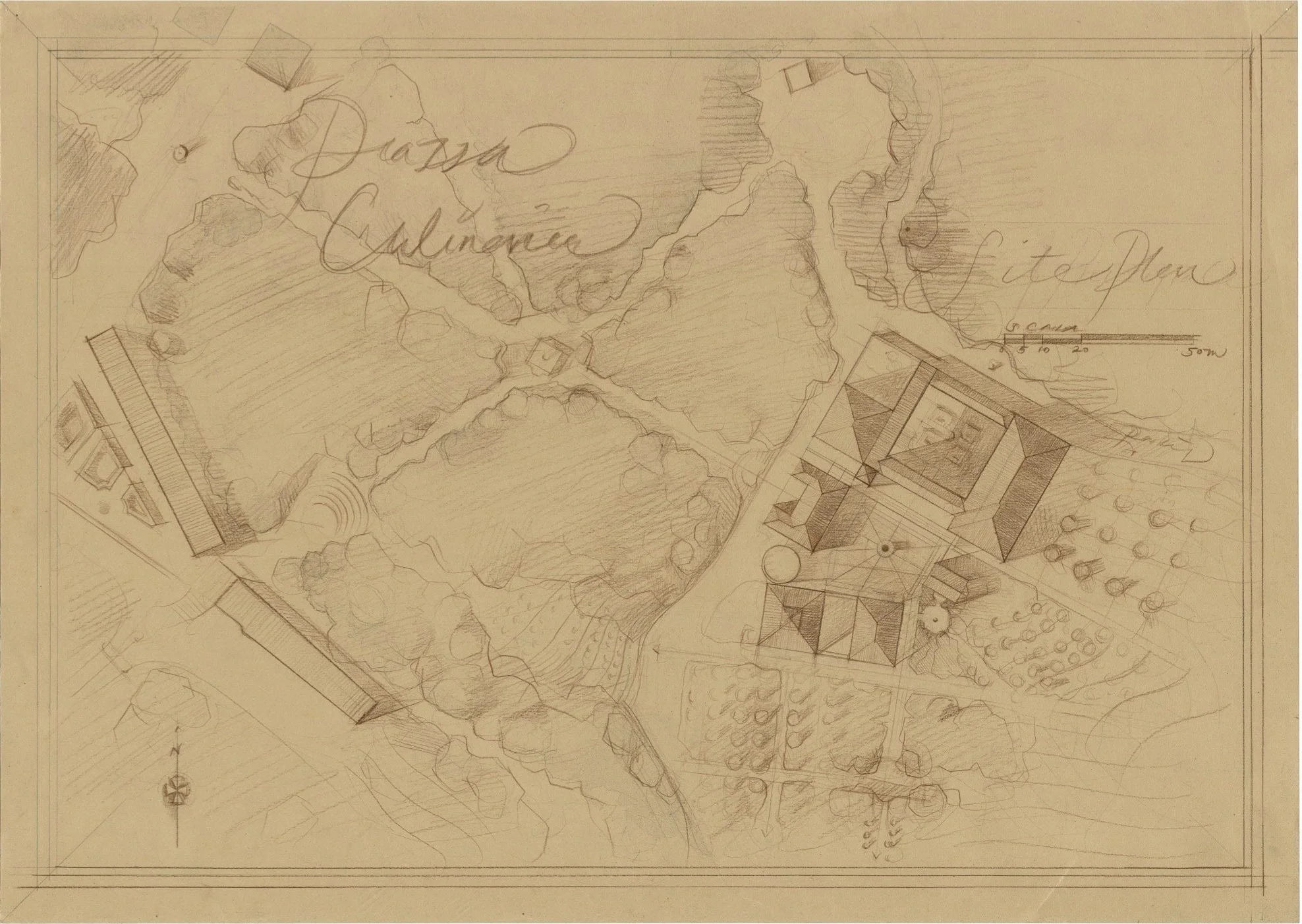 Situated in Parco Caffarella in Rome, this project depicts the design of a Culinary school complex or “borgo” at the top of a hill above Casale della Vaccareccia, an existing historical farm. The design brief was to add on to the farm complex and create both a network of gardens as well as a series of buildings to service the needs of the program, including but not limited to a kitchen, an auditorium, and events spaces. This design seeks to respond to the history of the site through its architectural character as well as its . It also took inspiration from Tuscan towns such as Pienza or Montepulciano in its forms particularly in its response to the natural landscape.